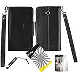 3 items Combo: ITUFFY (TM) LCD Screen Protector Film + Mini Stylus Pen + 2-Tone Leather Wallet & ID Card Case with lanyard for Prepaid Android Smartphone LG Optimus L70 MS323 Metro PCS / LG Optimus Exceed 2 VS450PP Verizon / LG L70 Cricket (Black / Black)