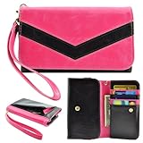 caseen ViVi Women's Smartphone Wallet Clutch Wristlet Case (Pink/Black) for Apple iPhone 6 5S 5C 5 4S 4, Samsung Galaxy S5 S4 S3, Google Nexus 5, LG G2, HTC One M7, Sony Xperia Z3 Compact / Z, Moto X, Moto G, Droid Razr [Up to 5.75 x 3.1 Inch Cellphone] - Medium Size