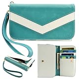 caseen ViVi Women's Smartphone Wallet Clutch Wristlet Case (Teal Turquoise Mint/White) for Apple iPhone 6 5S 5C 5 4S 4, Samsung Galaxy S5 S4 S3, Google Nexus 5, LG G2, HTC One M7, Sony Xperia Z3 Compact / Z, Moto X, Moto G, Droid Razr [Up to 5.75 x 3.1 Inch Cellphone] - Medium Size