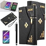 Note 4 Case,ULAK Note 4 Wallet Case PU Leather Galaxy Note 4 Flip Cover with Foldable Card Slots for ID.Credit Cards - Fashion Metal Zipper Studded Purse Design Flip Case for Samsung Galaxy Note 4-Black
